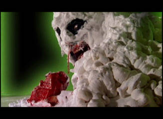 Another way of putting it: The film involves Bruce Shaver, who tires of his unemployed house husband suburban lifestyle and of his bitchy wife's nagging until one day he decides to shave and inadvertently releases a "shaving cream creature" from his shaving cream can. The creature convinces him that he can kill his wife and anyone else he wants to....and get away with it.....as long as he utilizes razor blades in his weapons. Razors are his power, and he ultimately rigs devices as diverse as ceiling fans and weed eaters to a deadly machete as the creature watches every step of the way, eager to devour a vanquished victim or two when he's hungry.